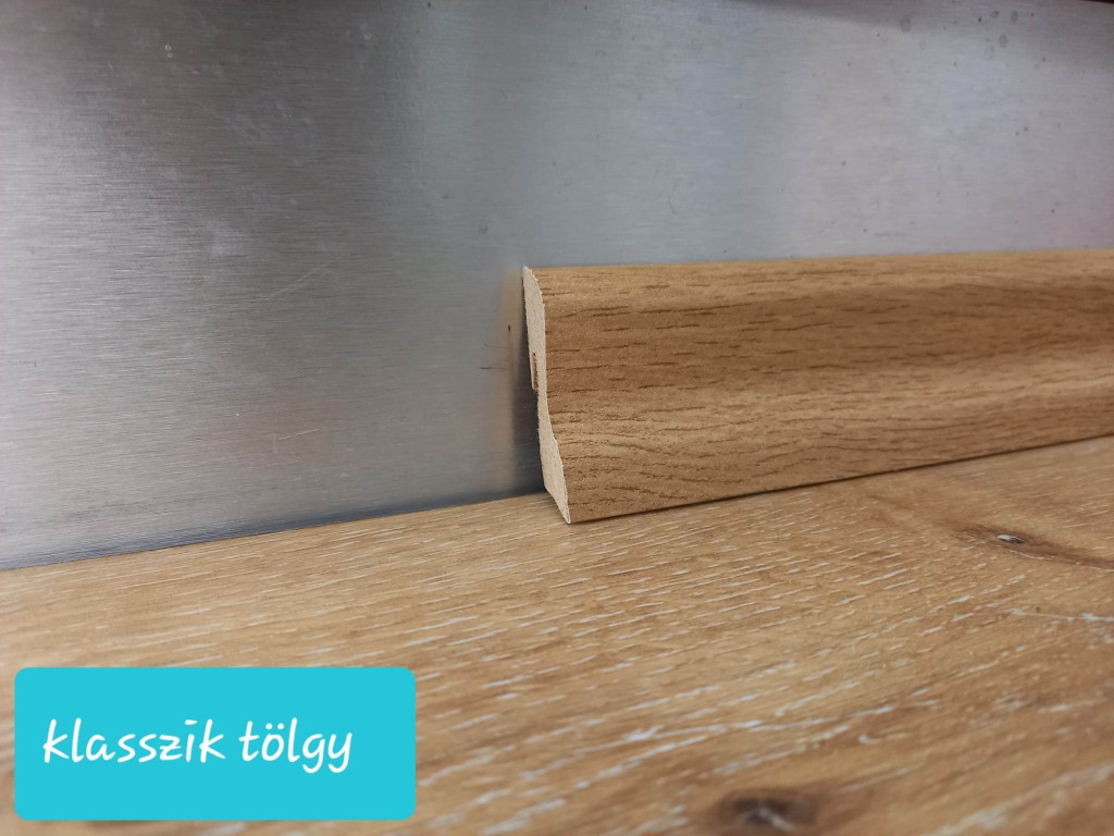 40 mm magas, 2,75m hosszú MDF fóliázott szegélyléc 30 féle dekorral. Festeni nem kell, a fólia tökéletes felületet biztosít a szegélylécnek! Klasszikus design. Rögzítő és műanyag sarokelemek is kaphatóak hozzá, amelyek nagymértékben megkönnyítik a felszerelést. A léc hátsó része úgy van kialakítva, hogy minél merevebb és masszívabb legyen, ezért csak egy darab, maximum 6mm átmérőjű kábelt lehet elvezetni mögötte. Mérete 40 x 19 x 2750 mm.